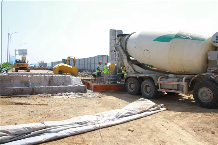 三門(mén)峽西收費站筏板澆筑C40混凝土